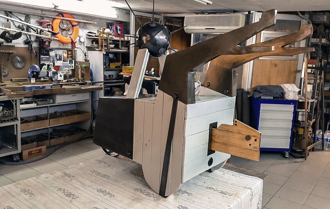 I had read this in Dieter Thomä’s book Fathers. The word famulus means “domestic slave” in Latin. When I read that, an image began to form in my mind — this sculpture represents the final stage of that image. Does the family, with its internal hierarchy, relational structure, and representation within society, embody a system that sustains the state’s order and never takes risks? This question gave rise to the work. I began with the idea of depicting a being without will — both creative and destructive — and from that came a sculpture of a wheelbarrow that is both pregnant and carrying a bomb: Famulus.