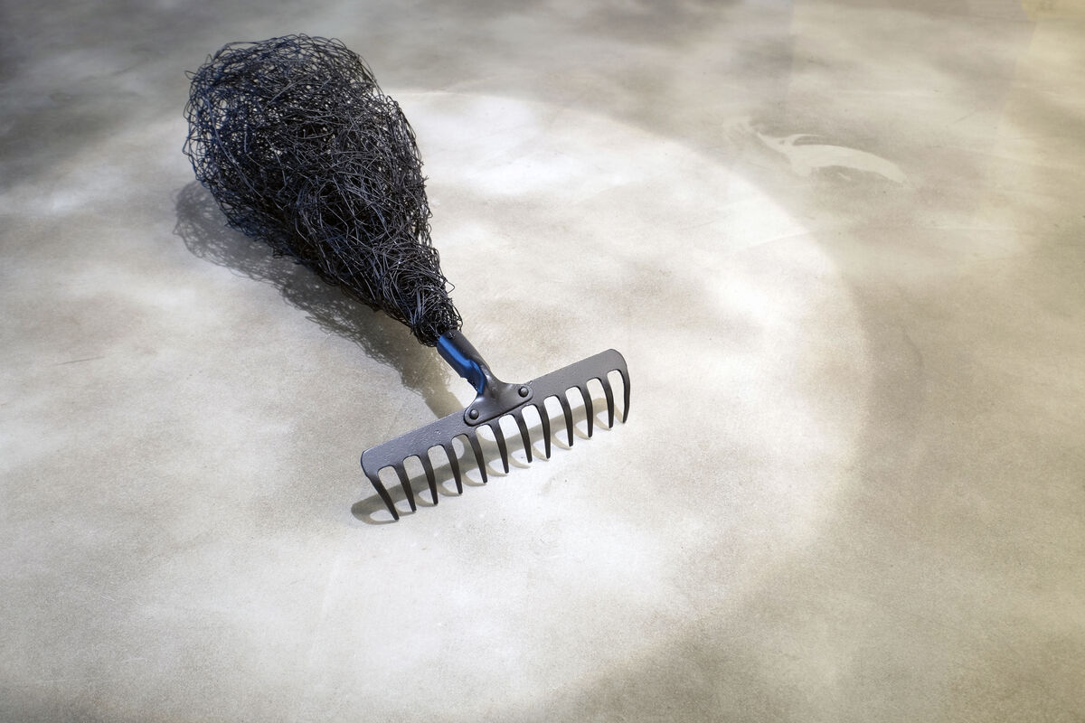 araç boyasıyla siyaha boyanmış tırmık ve tavlı tel rake painted black with automotive paint and annealed wire